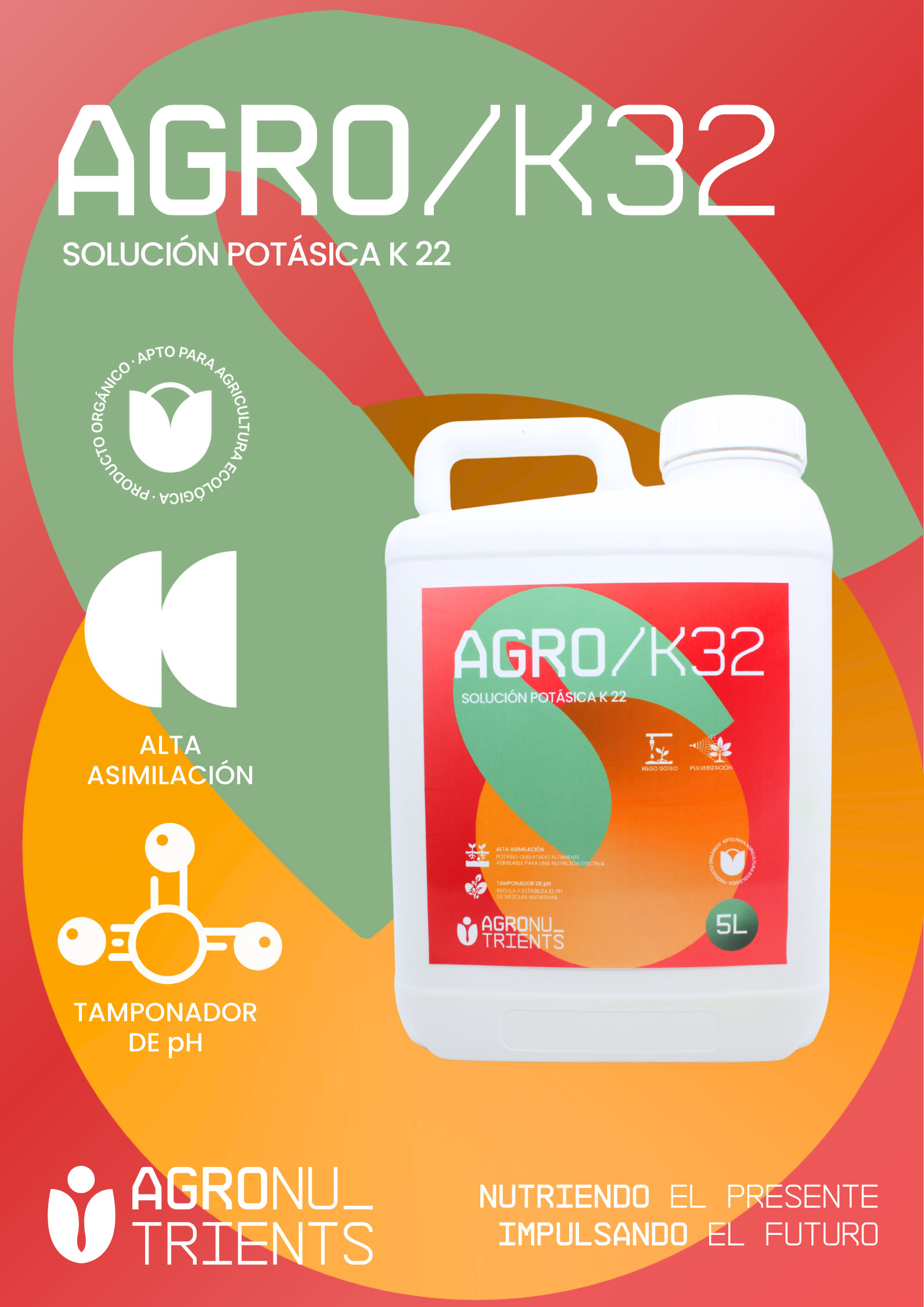 Agro K32 es un abono foliar de alta eficiencia especializado en el aporte de potasio, diseñado para proporcionar una nutrición controlada y equilibrada que optimiza el estado fisiológico de los cultivos. Su fórmula avanzada, totalmente exenta de nitratos, cloruros y metales pesados, garantiza una aplicación segura que potencia el vigor del vegetal y mejora significativamente la calidad comercial de las cosechas.