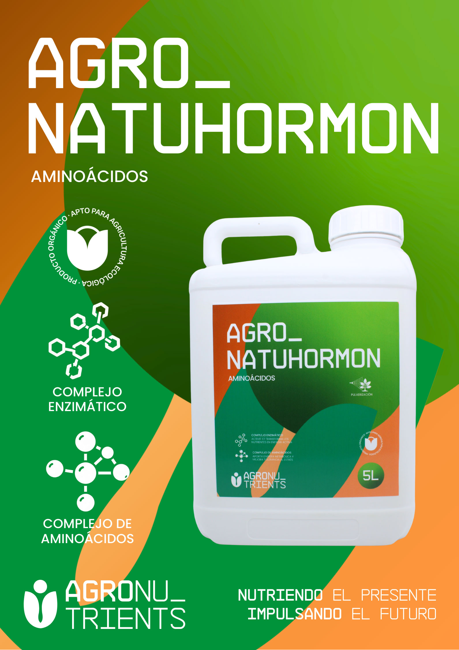 Agro Natuhormon es un bioestimulante natural de base orgánica-vegetal diseñado como un activador de los procesos biológicos que inducen el crecimiento equilibrado de raíces, tallos, hojas y frutos. Su formulación única combina extractos de algas (Ascophyllum nodosum), aminoácidos de origen cereal y el exclusivo activador metabólico Activic 117, que optimiza la absorción foliar y transforma los nutrientes en energía activa para el cultivo.
